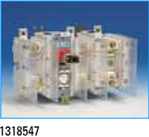 Se caracterizan por su diseño compacto. Disponibles en rangos de 40 A a 100 A de corriente nominal, 690 Vca de tensión de empleo. Realizado con material aislante a prueba de descargas superficiales. Apto para montaje en riel DIN. Posee contactos de conexión mediante terminales. Con o sin eje de operación intercambiable, de varias longitudes. Disponibles para enclavamiento con candado en posición OFF (1 candado, diámetro 5 mm). Categoría de utilización: AC-23 A.