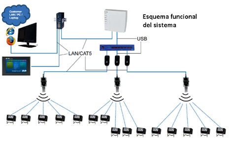 El sistema DIAGNOSE se compone de una red de sensores inalámbricos conectados a un controlador (hasta 5 sensores por controlador). A su vez este controlador puede, mediante un switch de ethernet, ser conectado a una PC, ser consultado vía web o a un sistema Scada.
