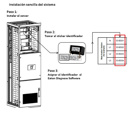 Cada sensor no necesita ningún tipo de cableado o conexión. Se alimenta directamente de la barra que esta sensando (sistema de captación de energía inalámbrica) y transmite la información (en forma inalámbrica) al controlador. Aparte de sensores para colocar en las barras, hay sensores de temperatura interior del tablero también inalámbricos que se integran al sistema. Estos sensores requieren de una pequeña batería (tamaño moneda) que requiere ser reemplazada cada 5 años aproximadamente.