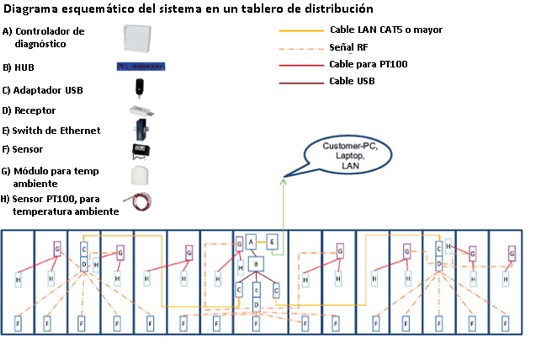 Cada sensor no necesita ningún tipo de cableado o conexión. Se alimenta directamente de la barra que esta sensando (sistema de captación de energía inalámbrica) y transmite la información (en forma inalámbrica) al controlador. Aparte de sensores para colocar en las barras, hay sensores de temperatura interior del tablero también inalámbricos que se integran al sistema. Estos sensores requieren de una pequeña batería (tamaño moneda) que requiere ser reemplazada cada 5 años aproximadamente.